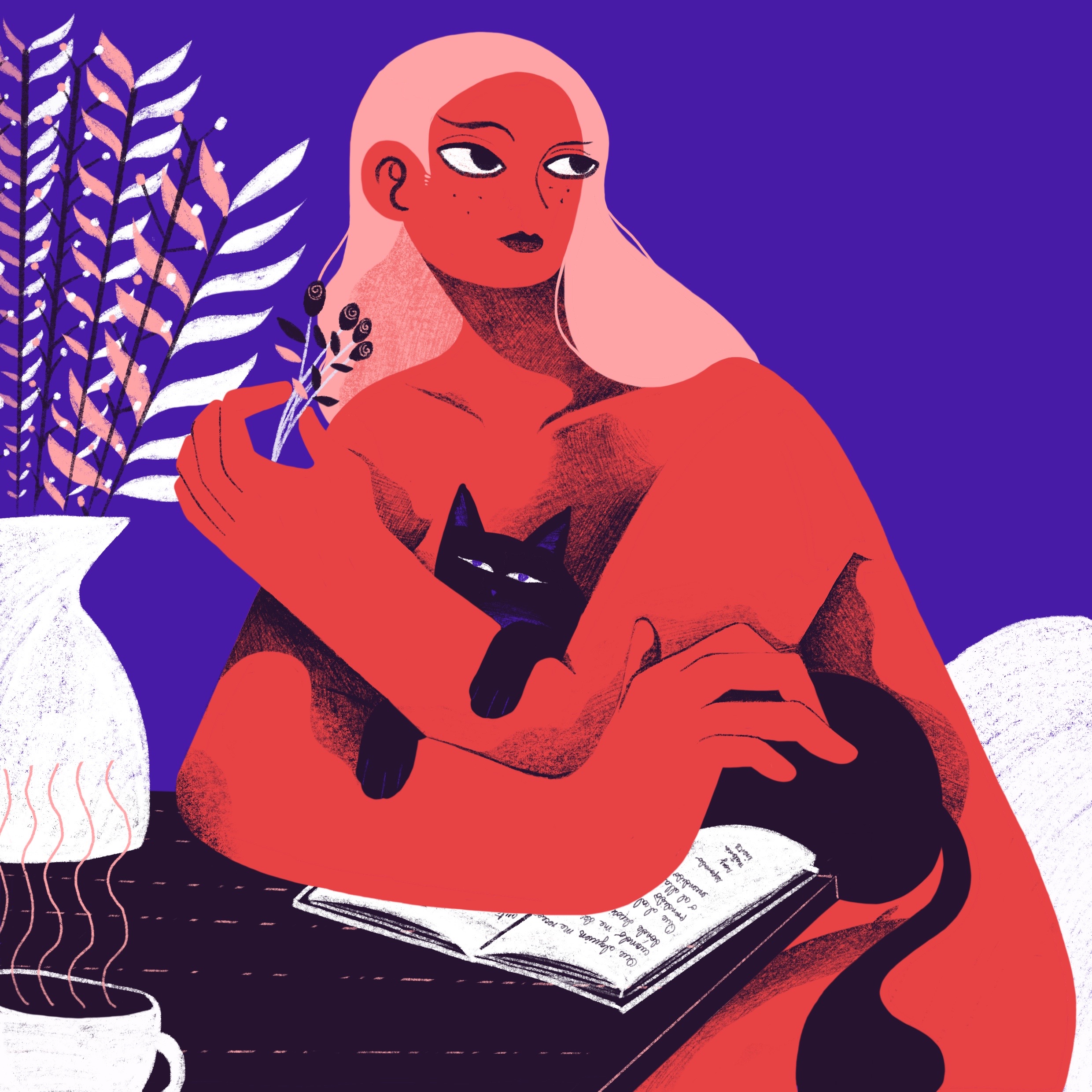 Estas ilustraciones tienen orígenes variados.La primera es una escena rutinaria de mi método de trabajo. La segunda versasobre el papel de las mujeres en la industria cafetalera en América Latina. Porúltimo, es una personificación de La Habana en el cuerpo de una mujer. Las tresmuestran a mujeres que sirven de sostén para cosas fundamentales en mi vida (migata, el café y mi ciudad).